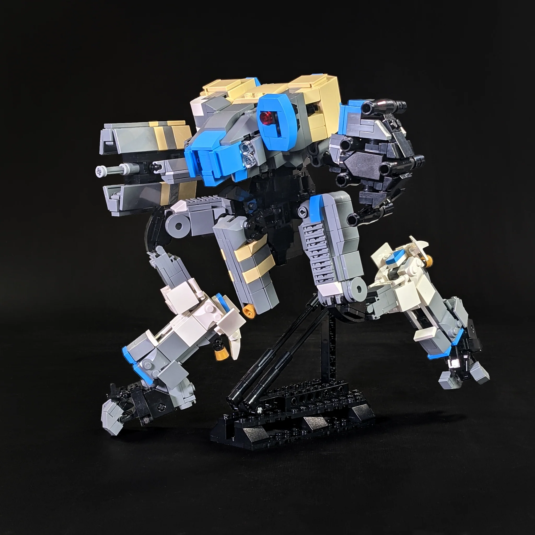 This model has an internal cockpit that seats one minifigure. The mech can articulate all limbs, and comes with a stand for extra stability and posing. There are two color build options included, Hannibal Mantis (blue, tan) and ONI Mantis (dark gray).