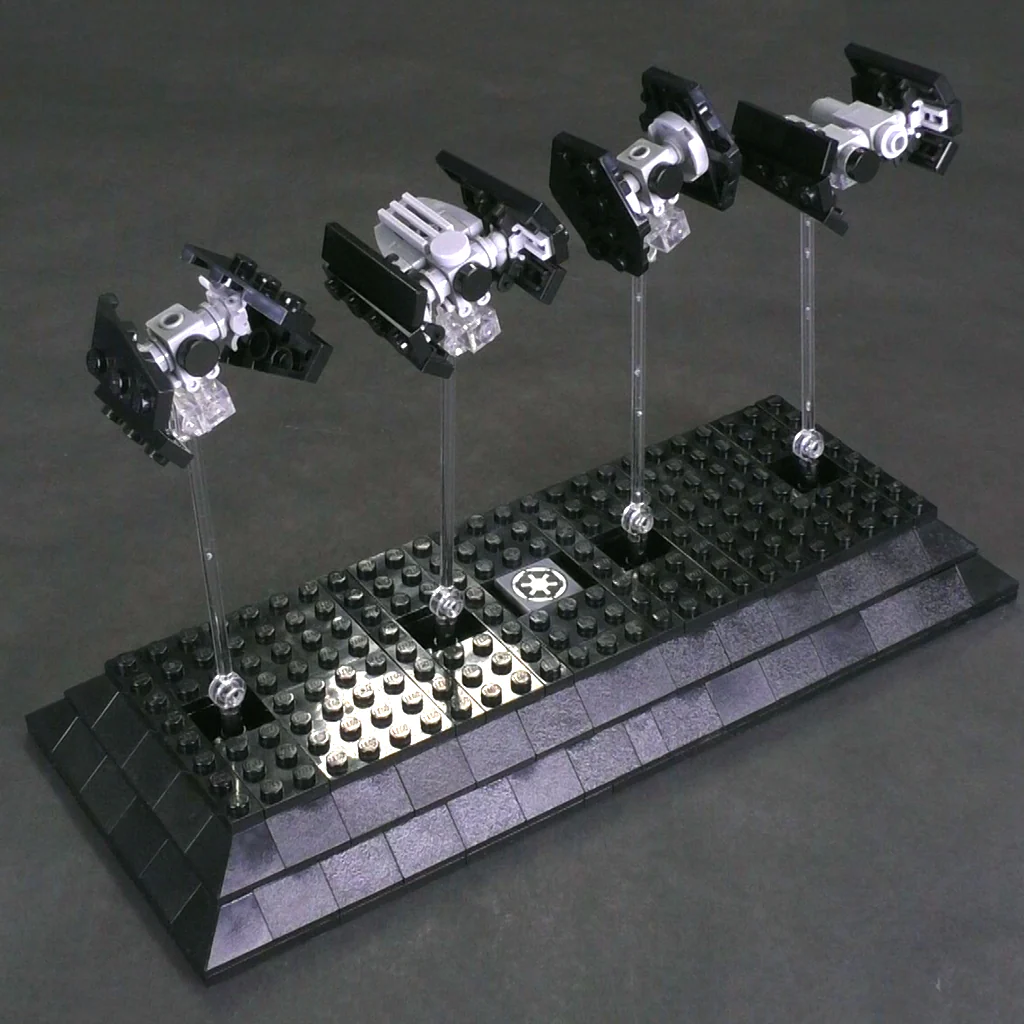 This is the complete set of original trilogy fighters from both the Empire and the Rebellion. Specifically that includes Micro Models for the A-wing, B-wing, X-wing, Y-wing (and U-wing because we like it). As well as the TIE Fighter, TIE Interceptor, TIE Bomber, and Darth Vader's TIE Advanced. These models have all been built to scale with each other so their size is represented accurately. They also scale with the other micro builds also listed in the webstore. This set includes 2 different stand designs as well.