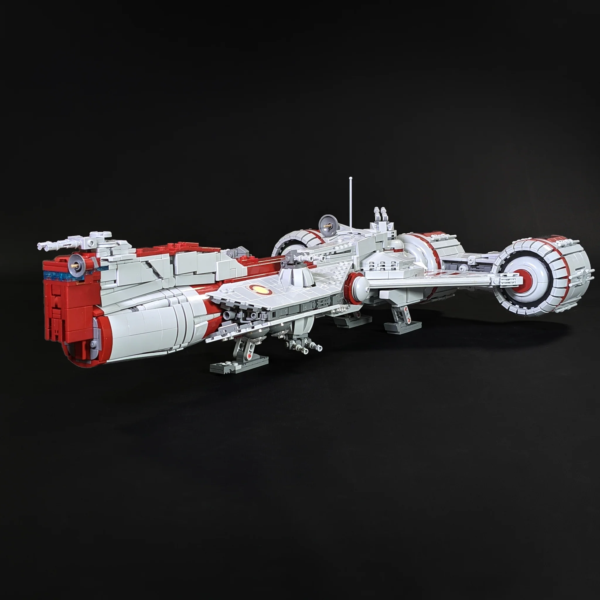 The Republic Frigate was a Consular-class cruiser not initially designed for battle. Its heavy armor, fast transport, and reliable track record made it an ideal candidate for military modification in order to combat the growing separatist forces. It ultimately served its role well during the Clone Wars with many of its major design elements being passed on to the CR90.