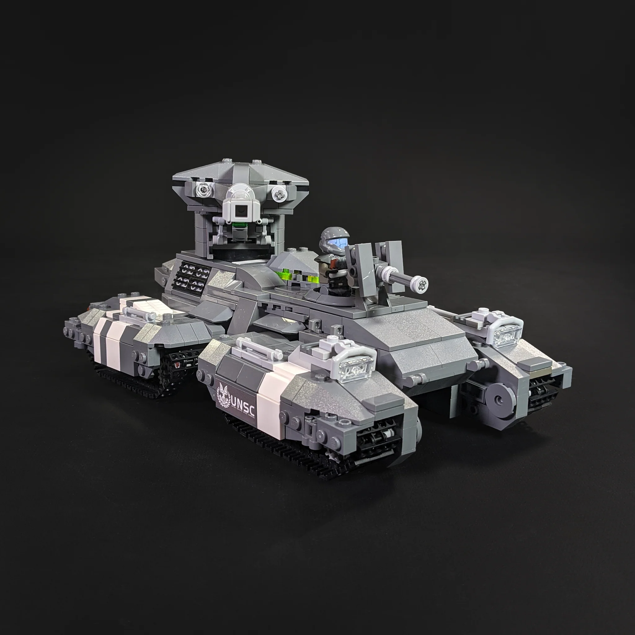 The Scorpion Main Battle Tank from Halo is one of the most recognizable armored fighting vehicles in all of video game history. The tried and true vehicle platform is incredibly efficient with very few updates throughout its long service history. This is the M808B variant of the model which includes a covered top for the driver and a coaxial M231 machine gun.