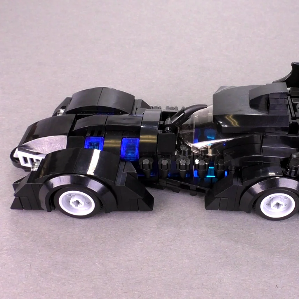 This is easily one of the most unique Batmobiles to ever exist. The original designers from the Batman Forever film (1995) were inspired by H.R. Giger giving this vehicle it's striking organic look. The giant fins and glowing underbelly of blue make it the most comic-book like Batmobile to ever be constructed in the real world! This MOC features an easily removable canopy that seats one batman minifigure.